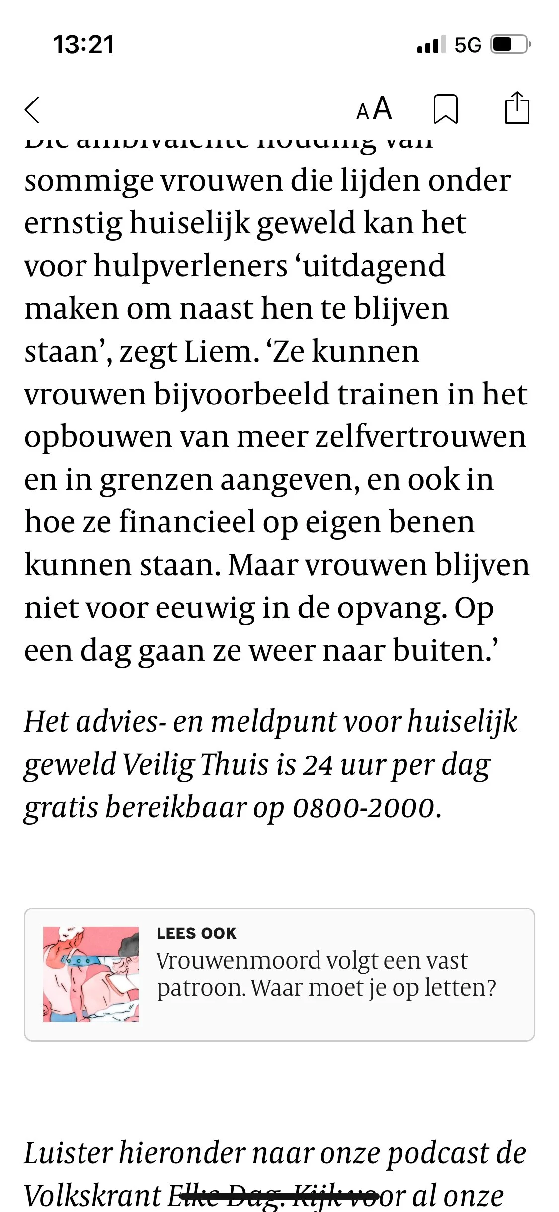 Op de afbeelding hiernaast zie je dat De Volkskrant onder een bericht over femicide de verwijzing al toepast. Ook wordt de term femicide nadrukkelijk in het artikel vermeld.